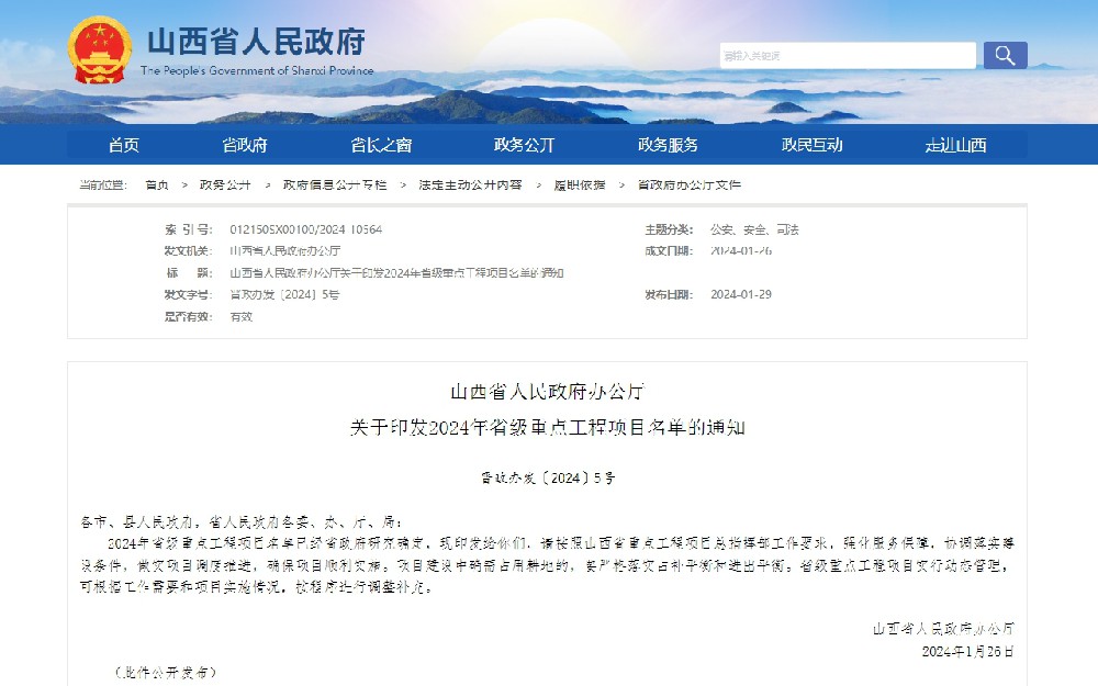 山西省人民政府辦公廳關(guān)于印發(fā)2024年省···